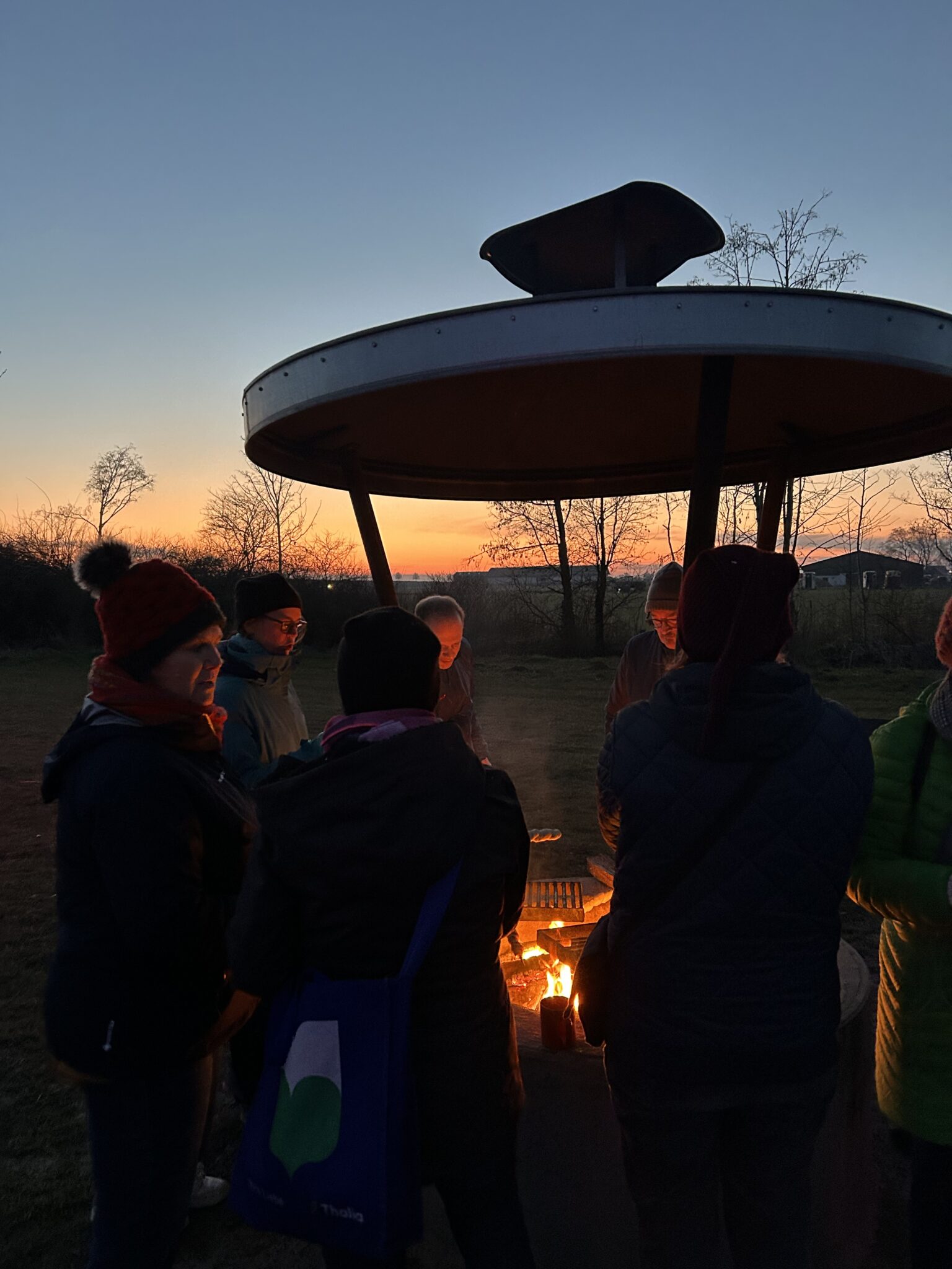 Entlang der Feldwege wurden wie geplant zahlreiche Gläser mit Teelichtern aufgestellt und sorgten – sobald die Sonne untergegangen war – für eine stimmungsvolle Beleuchtung. Das Wintergrillen auf dem Jugendplatz in Münchingen bot dann Gelegenheit zum Austausch bei heißen Getränken, Stockbrot und Würstchen. Bei klarem Himmel, Sonnenschein und einem eindrucksvollen Sonnenuntergang erlebten die Besucherinnen und Besucher eine besondere Atmosphäre.